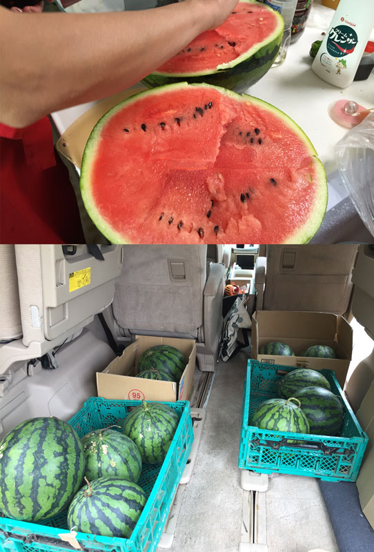 母の大好物はスイカ。静岡の父がつくった大きなスイカをバカッっと割り、食べてもらったよ。