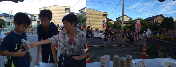 わが町最大の祭りが昨日開催された。駅前繁華街の十字路を踊り通すのがメイン行事なんだけど、その十字路沿いの一等地に自宅がある三男しんちゃん系友人の親であるマコピちゃんから「オレんち自宅前で祭りを飲みながらみよーぜ!」とありがたいお誘いをいただき、行って参りやした!