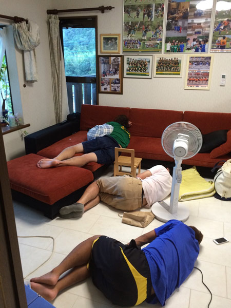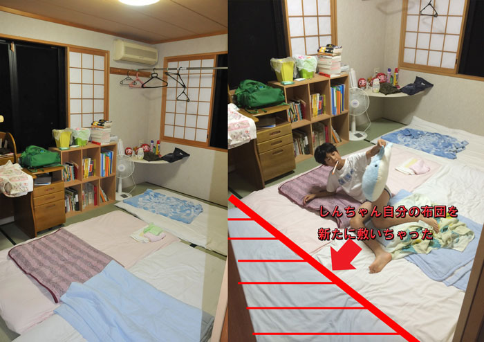 翌朝、三人なんでとっても良く寝れた(笑)。手前の二人は一枚の布団を二人で使っている。。