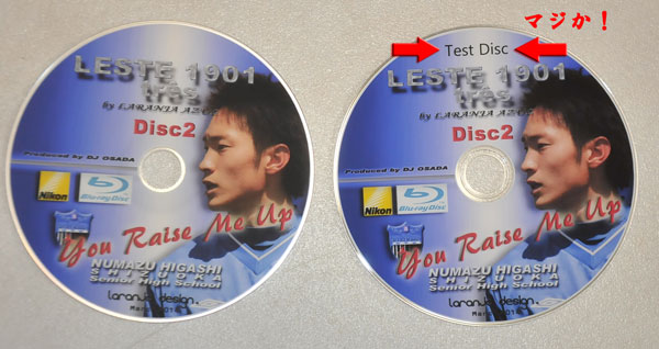 ※このブルーレイを完成させるためには、かなりの枚数のテストディスクで実際にTVで映し出された祭の画像のチェックをします。その試作品を判別できるよう、私の自己ルールとして、試作品のラベルには”TestDisc”と記載することとしていますが、正規品のラベルを印刷する祭、「Test Disc」の文字を削除せずに印刷してしまいました。