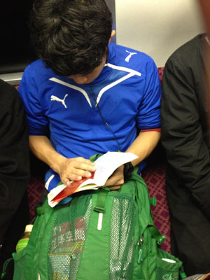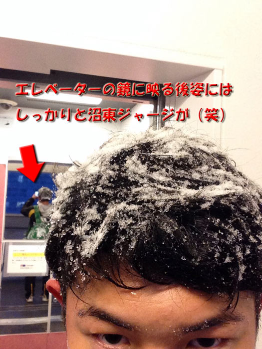 上の写真、マンションのエレベータを降りて写真を撮ったっぽいんだけど、ホントに沼東ジャージ着て地下鉄乗って受験して帰ってきたのが、証明されている(笑)。お主、なかなかやるな