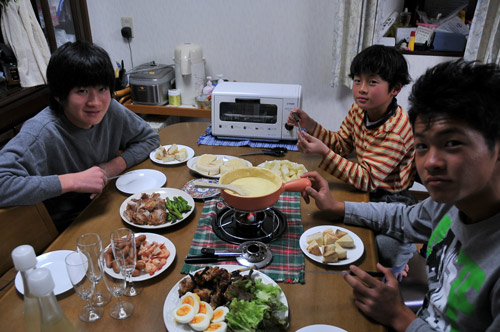 13:30 家に到着!やまちゅわんとしんちゃん帰宅。明日から冬休みでご機嫌だ!