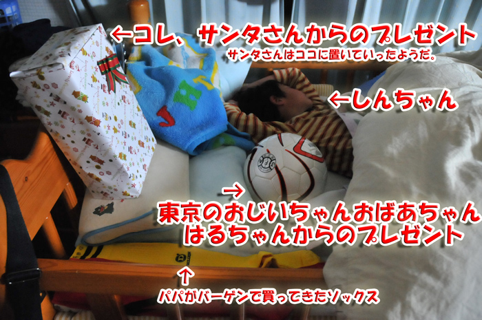 12:00 今日、夕方に、Shinと約束しているスポーピアシラトリでの「サンタさんにプレゼントしてもらうスパイクのパパ確認」(サンタさんとしんちゃんとの仲介役のパパが、お願いするスパイクはどんなカッコイイやつかを確認しないとね。在庫とかもね。サンタさんに探させるのもなんだし、サンタさんに作ってもらうのもどうかと思って。しんちゃん希望のスパイクは女房に事前リサーチ済み)の、さらに「事前調査」に出向く。(サンタさんに頼むだけあって入念である。これからフィンランドのサンタさんにお願いするために片言のスウェーデン語も勉強しなければならず、仲介役は毎年大変なのである。) どうやら、しんちゃんご希望のプレゼントの在庫は豊富らしい。サンタさんに教えてあげよう。
