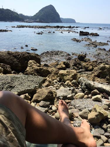 昼寝やスマホ、散歩で時間をつぶす。だんだん潮が引いてきた